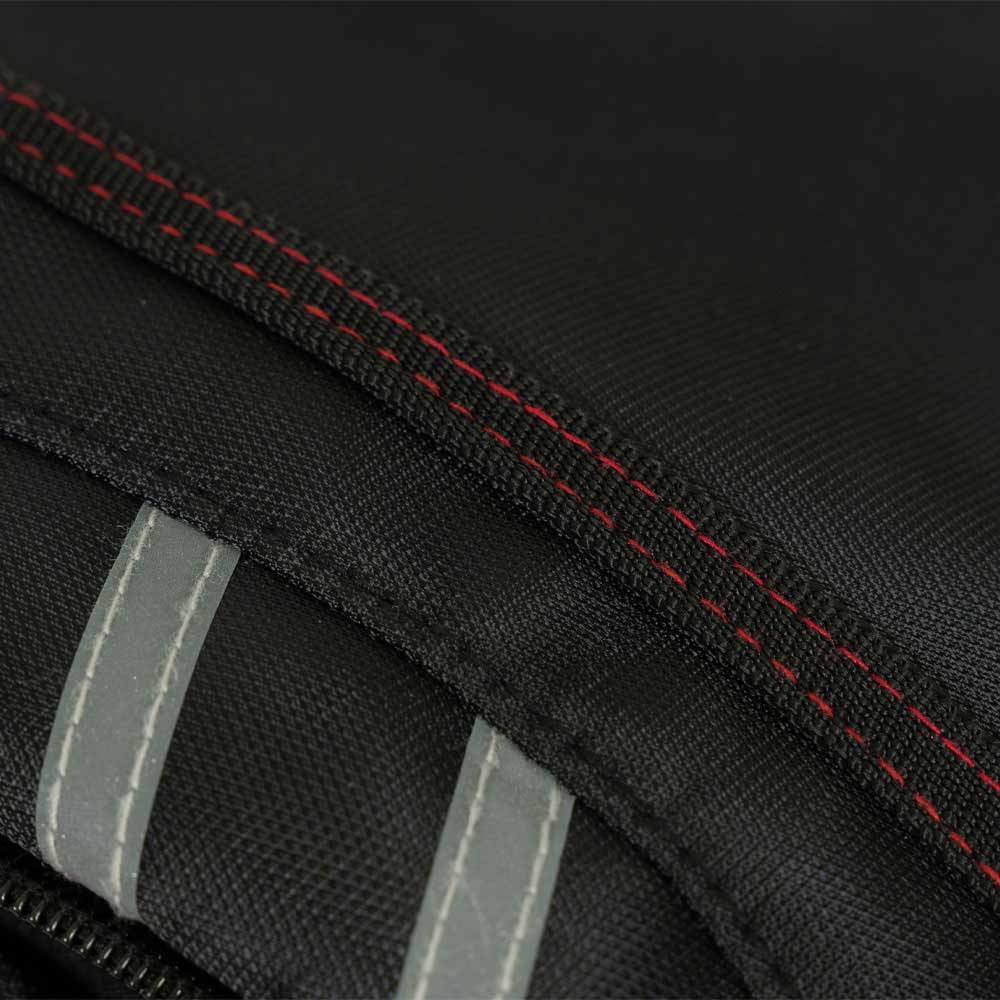 Mặt trước balo được phối hai đường chỉ đỏ nổi bật, tạo điểm nhấn mạnh mẽ và nam tính. Lưng balo sử dụng nhựa lì cứng 1,5 li kết hợp lớp xốp dày 1,5 cm, mang lại cảm giác êm ái khi đeo, đồng thời tăng độ bền chắc. Quai đeo bản to, đệm dày giúp mang balo lâu mà không gây đau vai. Các chi tiết hoàn thiện tỉ mỉ, từ đường may đến khóa kéo, đảm bảo độ bền cao và phù hợp với xu hướng thời trang hiện đại.